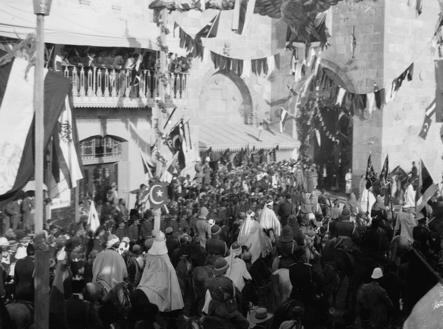 The German Emperor’s arrival in Jerusalem on October 28, 1898 was a major news item around the world. The Ottoman rulers of Jerusalem and Palestine changed the face of Jerusalem to receive him. Victory arches were built along his route, and the Old City wall was breached to allow passage of his carriage.